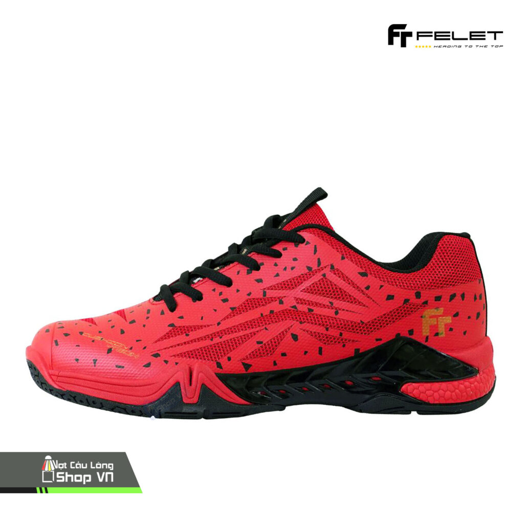 Với gam màu chủ đạo là đỏ đen, Felet Galaxy Boost Đỏ Đen thu hút ánh nhìn và mang đến phong cách thời trang sành điệu, phù hợp với nhiều phong cách và sân cầu lông khác nhau. Sản xuất tại Hàn Quốc, đất nước nổi tiếng với ngành công nghiệp giày chất lượng cao, đôi giày này thể hiện sự tỉ mỉ và chất lượng đáng ngạc nhiên.