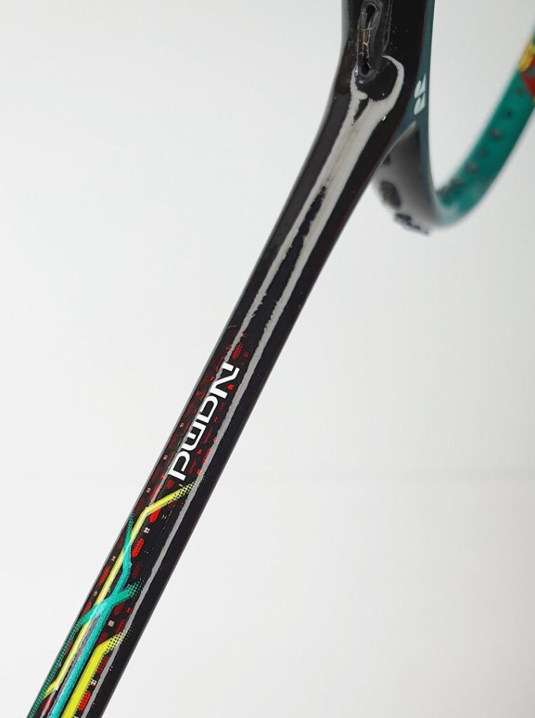Một chi tiết thú vị khác là lớp sơn bên ngoài của vợt lại mang diện mạo của Yonex Astrox 88S, nhưng cấu trúc bên trong thực chất lại dựa trên nền tảng của Yonex Arcsaber 11. Không chỉ vậy, phiên bản tùy chỉnh này còn được rút ngắn hơn bản thương mại khoảng 3mm – một thay đổi nhỏ nhưng ảnh hưởng lớn đến cảm giác cầm và tốc độ xử lý.