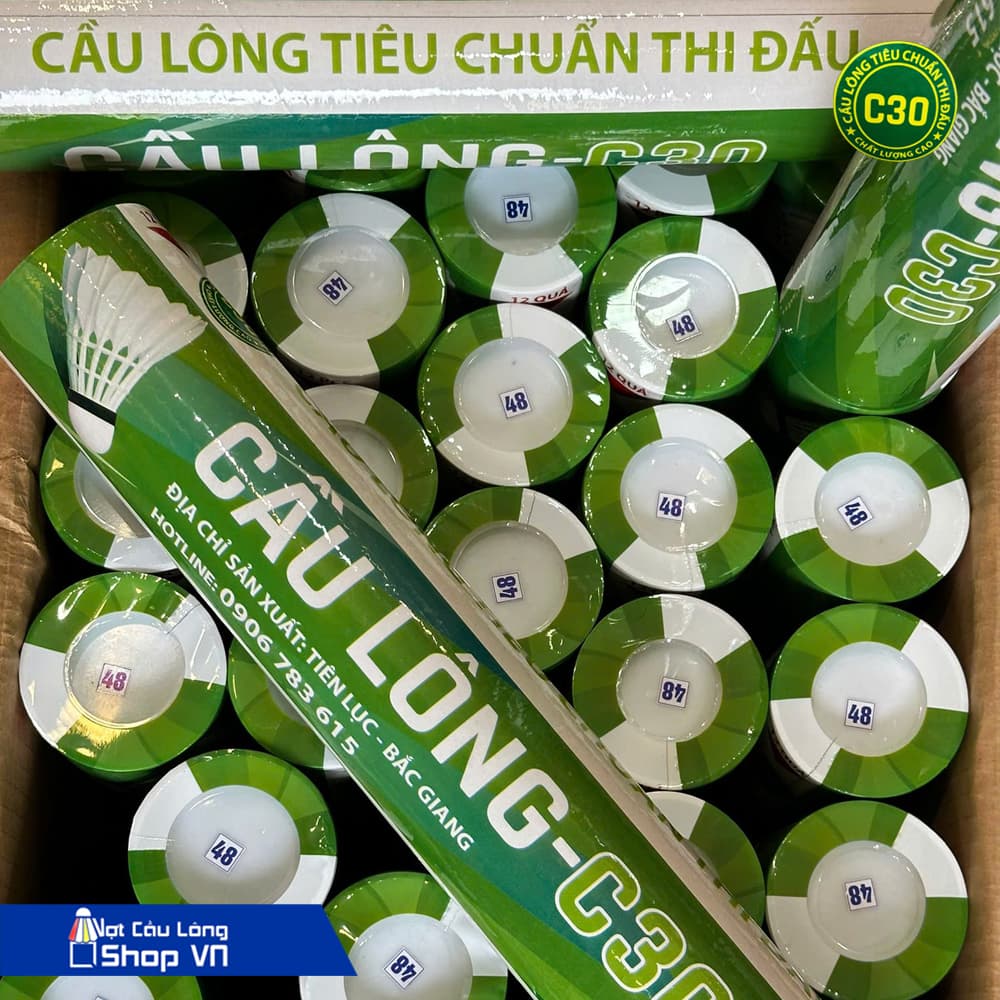 0899 163 666Ống cầu lông C30 là một trong những loại cầu phổ biến, đạt tiêu chuẩn thi đấu với thiết kế 16 cánh lông tự nhiên được phân bổ đều xung quanh đế, gia công cắm theo hình rẻ quạt cho quỹ đạo xoay tròn giúp tạo ra độ ổn định và đầm khi bay, hạn chế tối đa vấn đề rung lắc hay bị xoáy trong lúc bay.