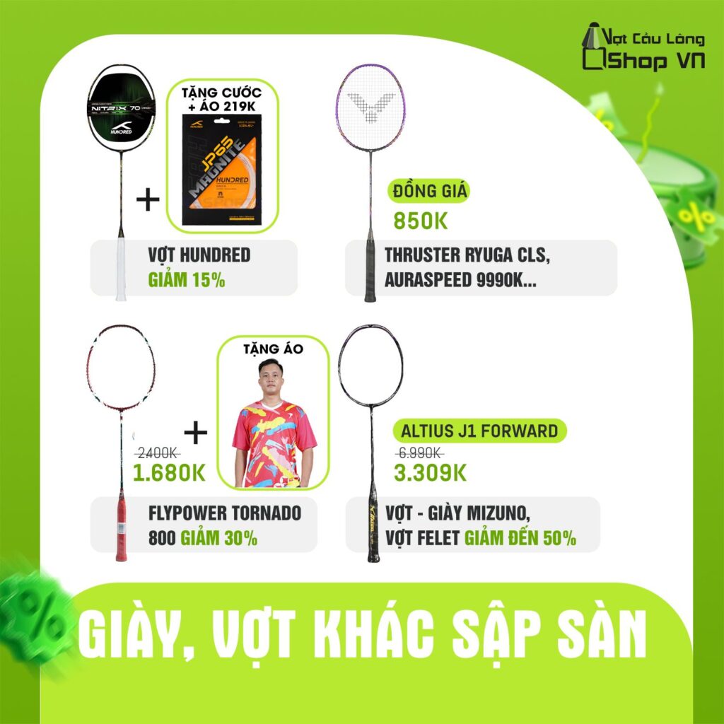 Ngoài ra, còn nhiều chương trình ưu đãi khác đang được áp dụng trong suốt thời gian diễn ra sự kiện. Số lượng sản phẩm khuyến mãi có hạn, chương trình có thể kết thúc sớm khi hết hàng. Khách hàng có thể liên hệ trực tiếp với Vợt Cầu Lông Shop để được tư vấn và nhanh chóng sở hữu những sản phẩm chất lượng với mức giá tốt trong dịp sinh nhật đặc biệt này.