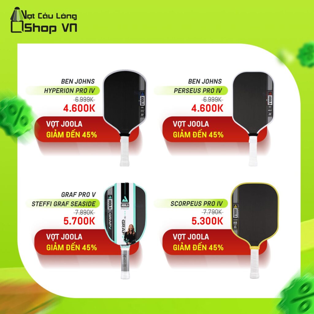 - Vợt Joola giảm đến 45% cho nhiều mẫu hot.