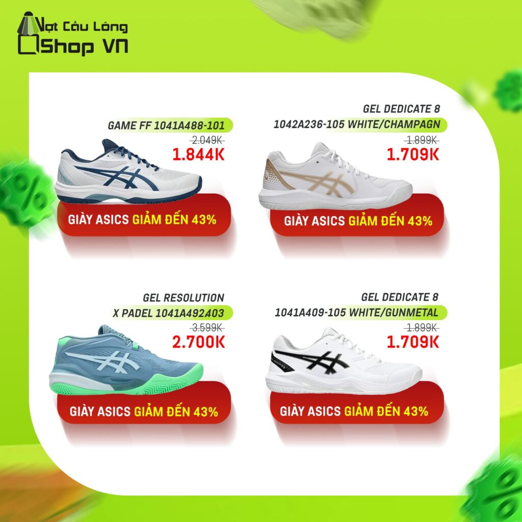 - Giày Asics Gel Resolution X từ 3.599.000đ giảm còn 2.700.000đ.