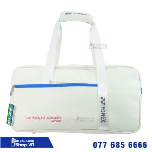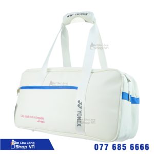 .Chiếc túi cầu lông Yonex 229BT006U màu trắng – Gia công là một ví dụ về thiết kế tươi đẹp, sở hữu màu trắng tinh khiết và điểm nhấn màu xanh nổi bật, đúng theo phong cách đặc trưng của thương hiệu Yonex. Đây là một sản phẩm thể thao đầy năng động, không chỉ hữu ích trong sân đấu mà còn là một biểu tượng thời trang.