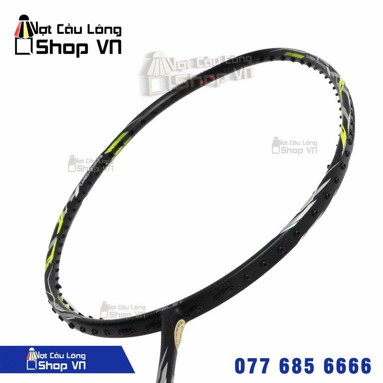 Vợt được thiết kế tỉ mỉ với tông màu đen hầm hố, quyết chiến cùng điểm nhẹ họa tiết màu vàng – trắng trải dài trên khung vợt càng tăng thêm điểm nhấn nổi bật. Với phong cách phối màu này rất thích hợp với những bạn có các tính mạnh mẽ, năng động.