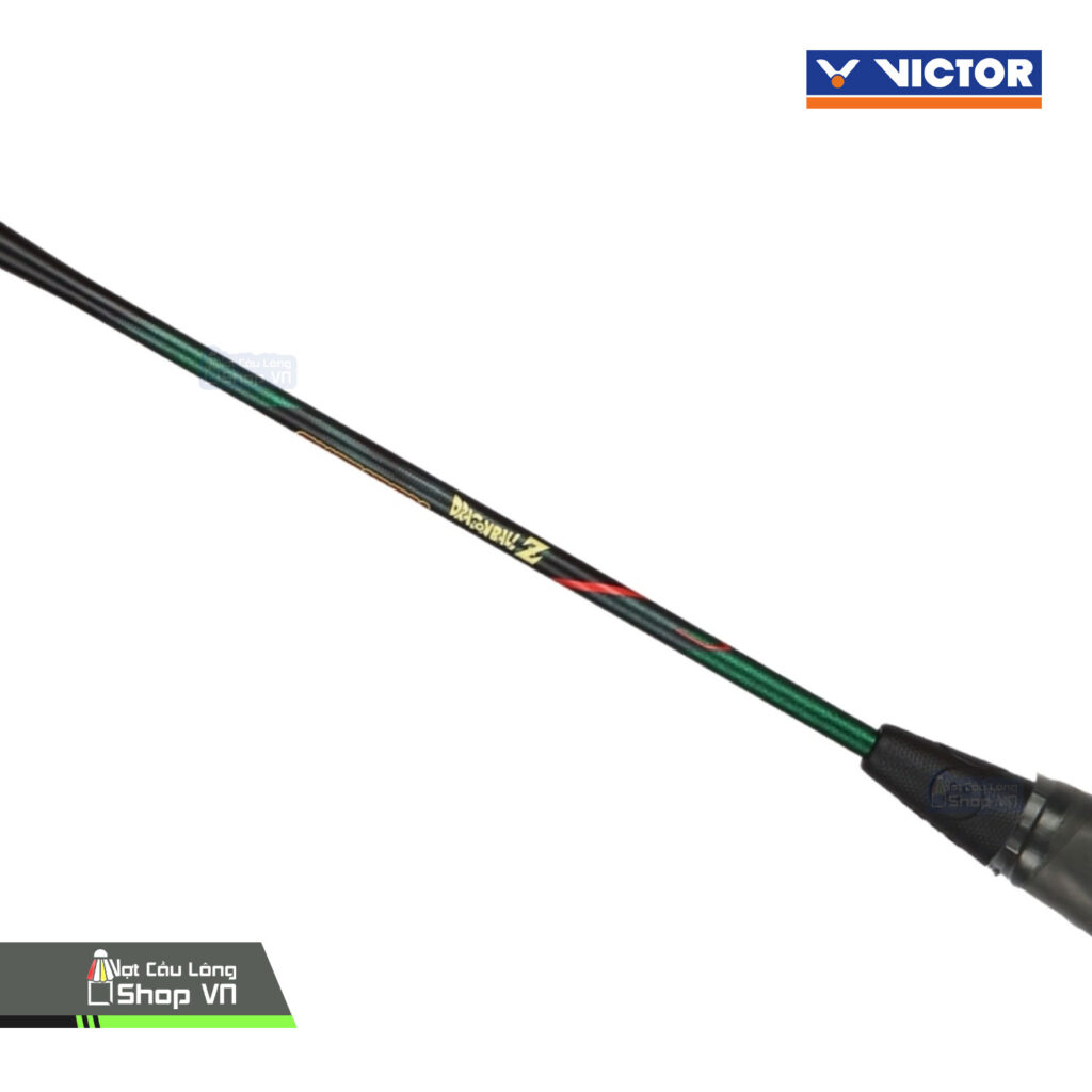 Victor Thruster Shenron gây ấn tượng ngay từ cái nhìn đầu tiên nhờ thiết kế được lấy cảm hứng từ Rồng Thần Shenron – biểu tượng quyền năng trong thế giới Dragon Ball. Toàn bộ thân vợt được phủ lớp sơn màu xanh lục ánh kim đặc trưng, kết hợp với các họa tiết rồng uốn lượn tinh xảo, mang lại cảm giác vừa mạnh mẽ vừa bí ẩn. Đây không chỉ là một cây vợt, mà còn là món đồ sưu tầm đáng giá với fan hâm mộ anime và cầu lông.